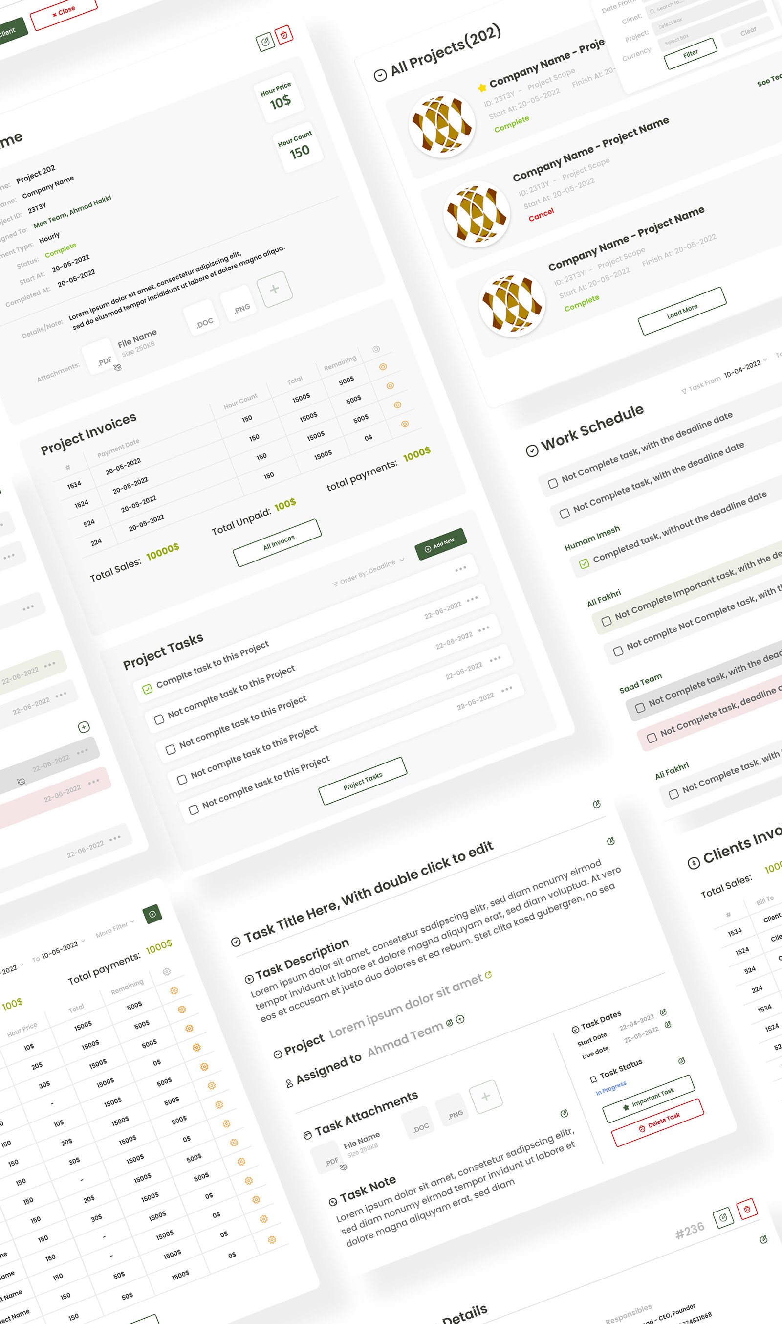 تصميم وبرمجة منصة خاصة لادارة فريق العمل والعملاء والفواتير