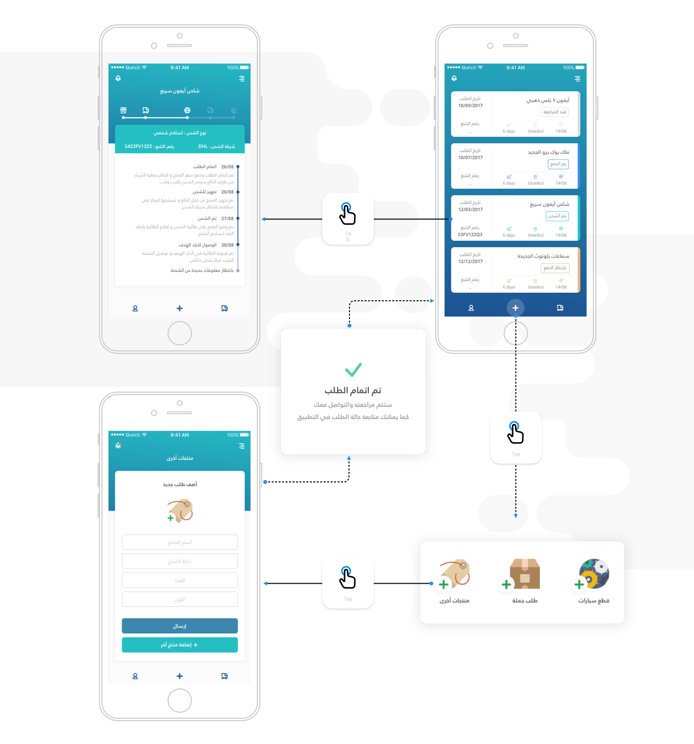 يقدم التطبيق حلاً للشراء من الانترنت, حيث يقوم بالشراء من المواقع بسلاسه ويتيح واجهه لتتبع الطلبات حتى وصولها للوجهه